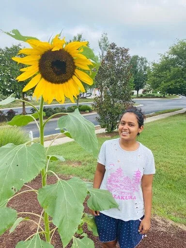 Browsing through the garden section of Walmart last year, I noticed these Russian Mammoth sunflower seed packets. I had never heard of mammoth sunflowers before so it definitely piqued my interest and I decided to buy them. We came home and my husband casually threw a few seeds in some dirt next to our porch and it was astounding to see those massive giant flowers just grow out of such a tiny seed, towering two times over me at full maturity! We not only treated it like a prized possession but it was also a fun conversation starter with our neighbors. Everyone stopped and looked at it :)